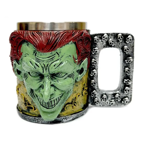 Внешняя часть кружки сделана из полимерной глины и эпоксидной смолы, декорирована акрилом. Внутри — полость из нержавеющей стали. Кружка большая, а за счет сложного декора — достаточно увесистая.