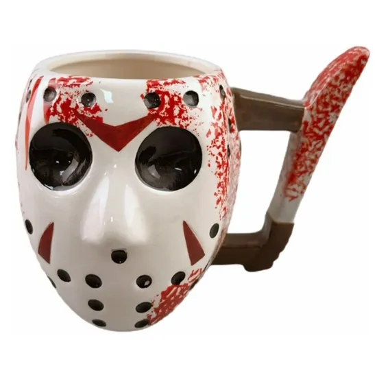 Оригинальная 3D кружка «Пятница 13-е» в оригинальном дизайне сделает посиделки с друзьями ещё веселее. Она непременно понравится людям с хорошим чувством юмора, любителям готики и брутального стиля. Благодаря используемому материалу (керамика) напиток будет оставаться некоторое время прохладным.
