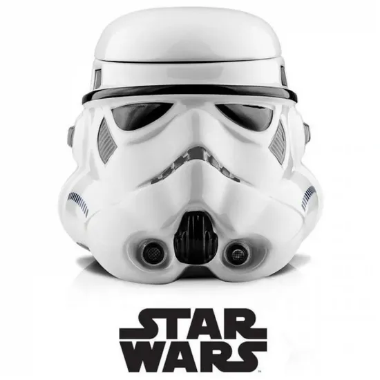 Перейди на темную сторону, купить оригинальную кружку в виде шлема Штурмовика. Удержаться от соблазна нелегко, ведь изделие в точности повторяет дизайн шлема известного злодея вселенной Звездных войн, изготовлено из качественной керамики и оснащена удобной крышкой, которая позволяет надолго сохранить оптимальную температуру чая или другого напитка.