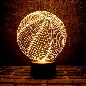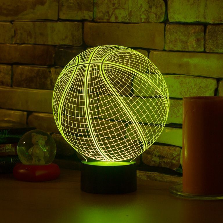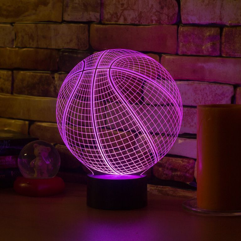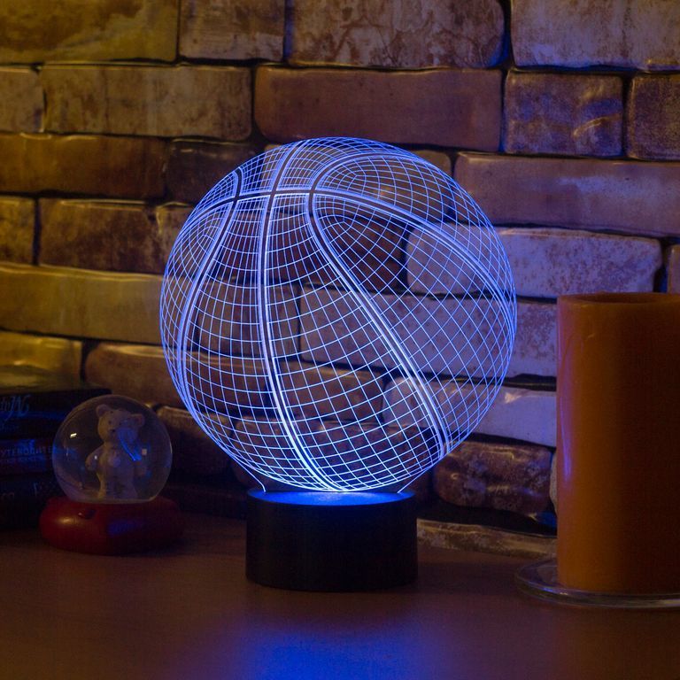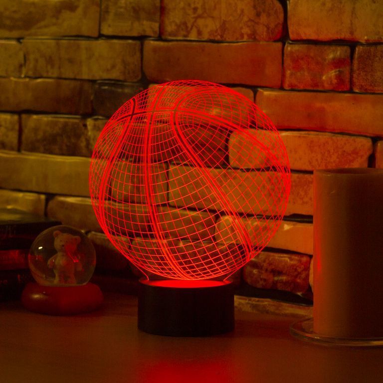 3D лампа Баскетбольный мяч с иллюзией 3D работает от USB провода или от 3-х батареек ААА.