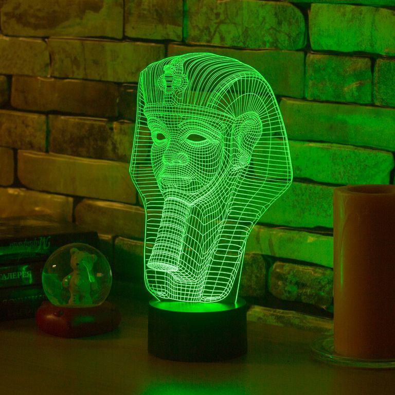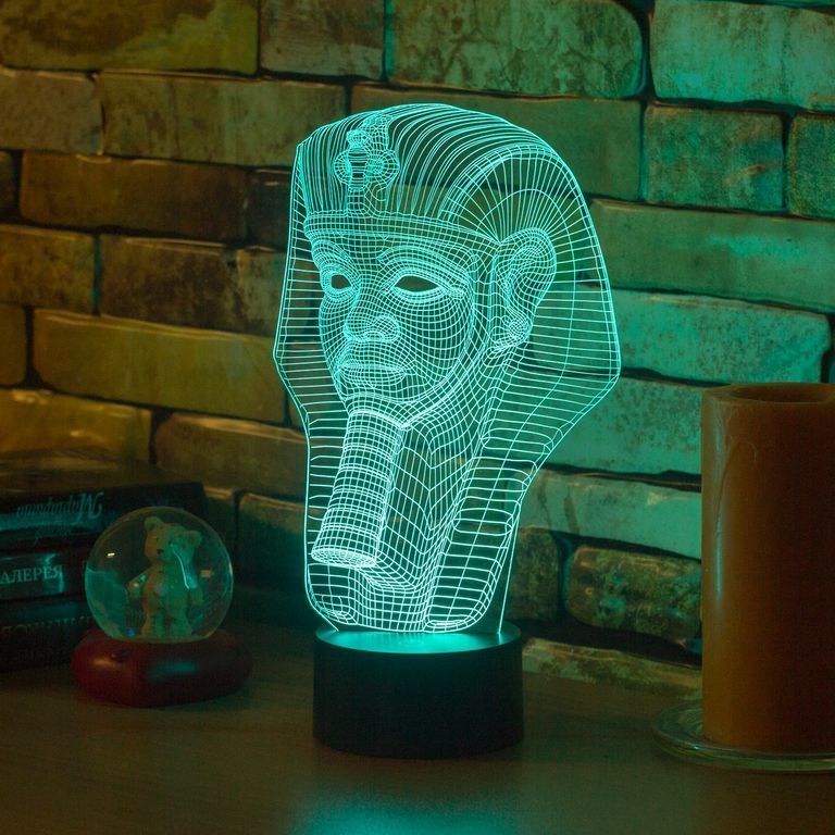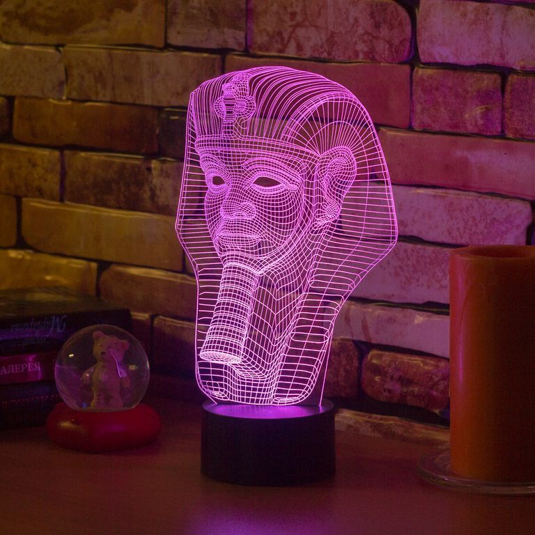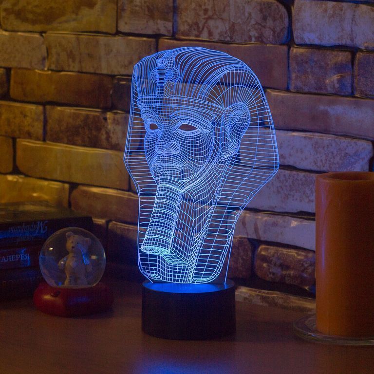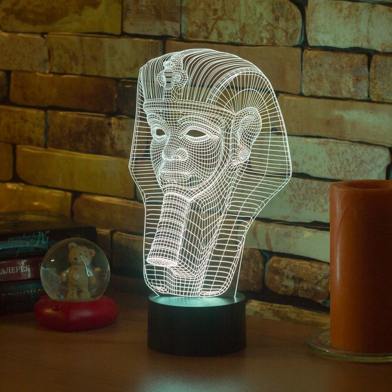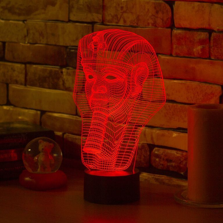 3D лампа Фараон Тутанхамон с иллюзией 3D работает от USB провода или от 3-х батареек ААА.
