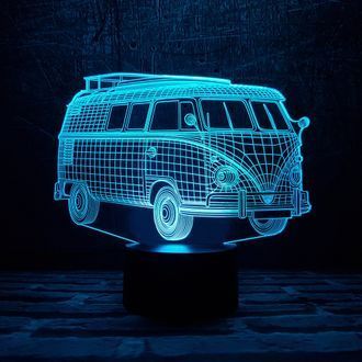 3D лампа Фургон с иллюзией 3D работает от USB провода или от 3-х батареек ААА.