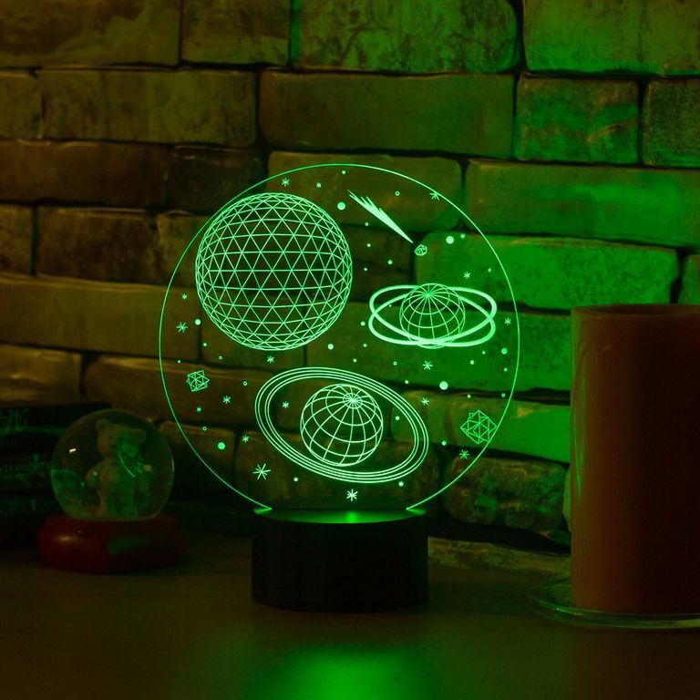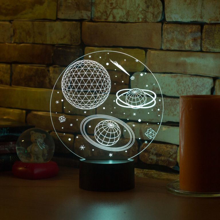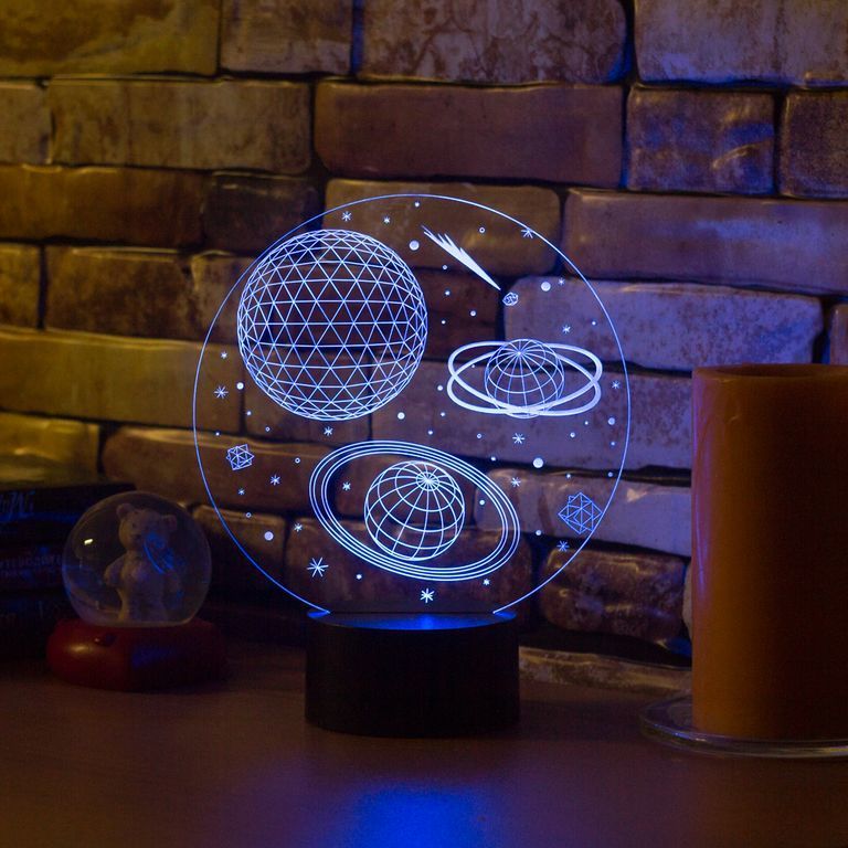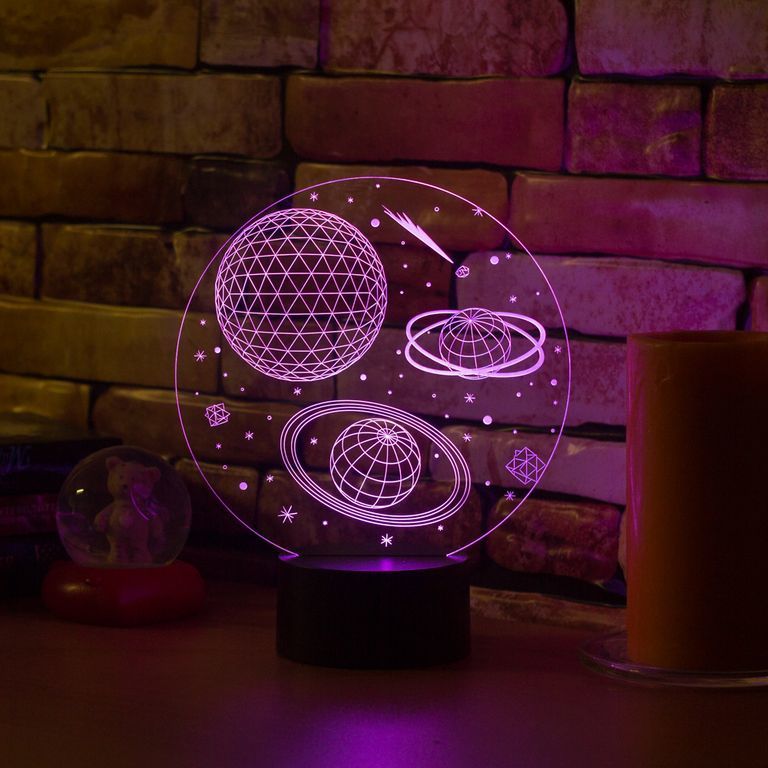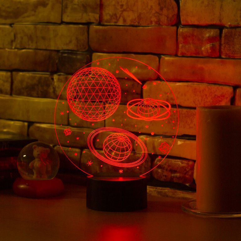 3D лампа Галактика Galaxy с иллюзией 3D работает от USB провода или от 3-х батареек ААА.