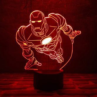 3D лампа Железный человек Iron Man с иллюзией 3D работает от USB провода или от 3-х батареек ААА.