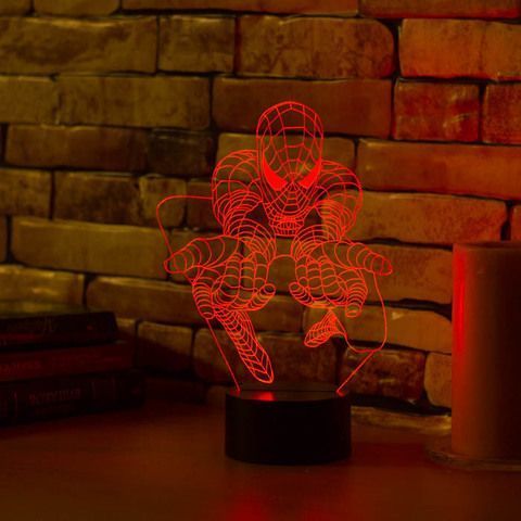 3D лампа Человек паук с иллюзией 3D работает от USB провода или от 3-х батареек ААА.