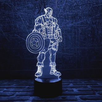 3D лампа Капитан Америка Captain America с иллюзией 3D работает от USB провода или от 3-х батареек ААА.