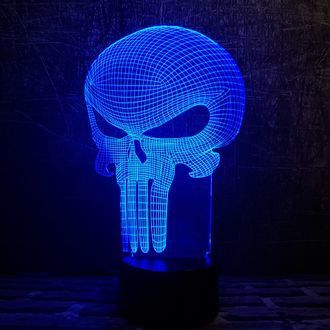 3D лампа Каратель Punisher с иллюзией 3D работает от USB провода или от 3-х батареек ААА.
