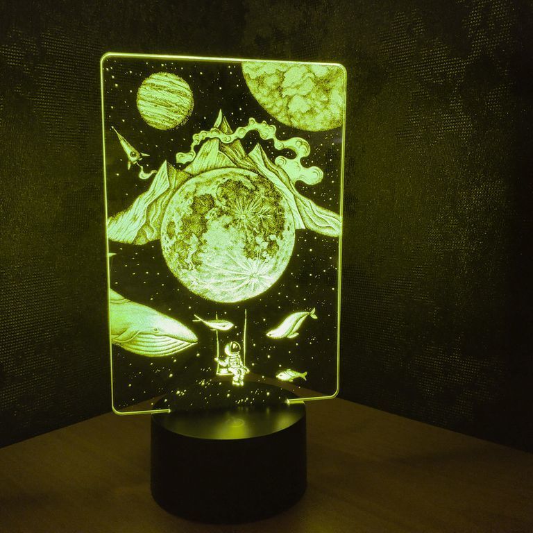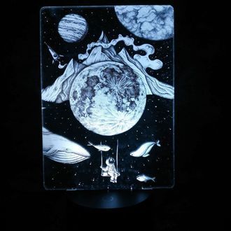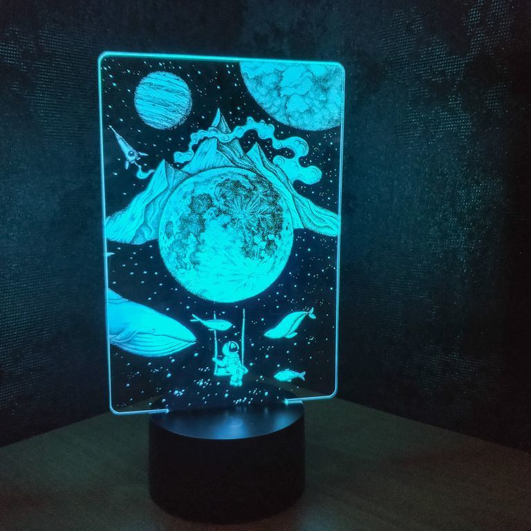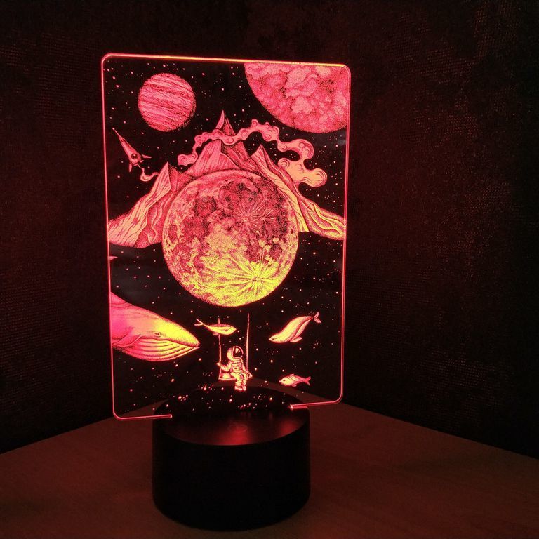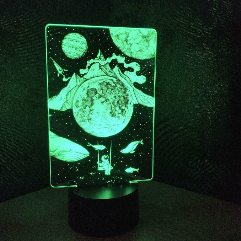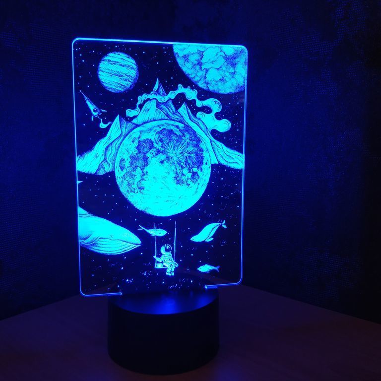 3D лампа Мир Снов с иллюзией 3D работает от USB провода или от 3-х батареек ААА.
