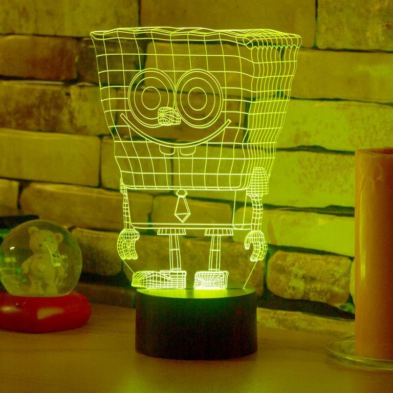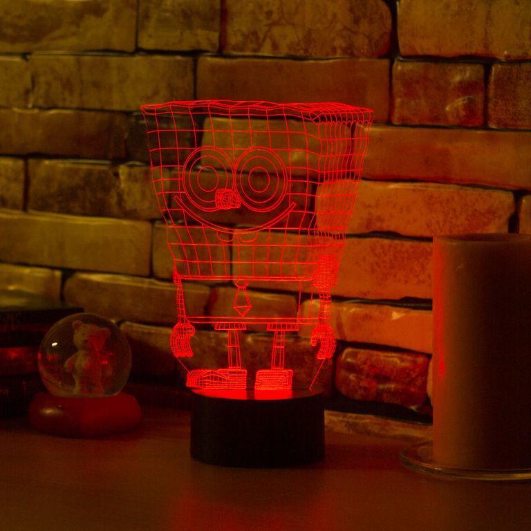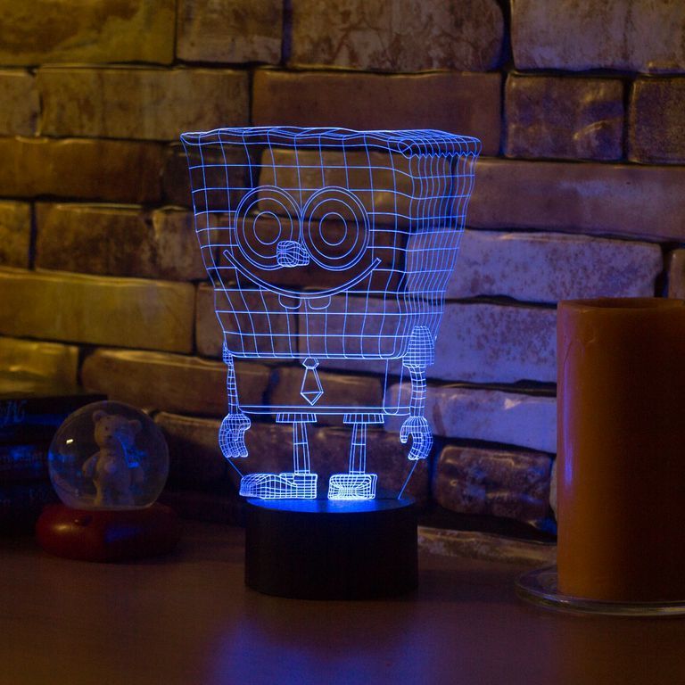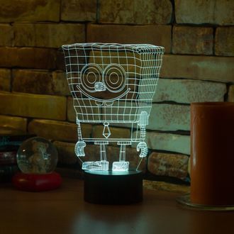 3D лампа Спанч Боб Sponge Bob с иллюзией 3D работает от USB провода или от 3-х батареек ААА.