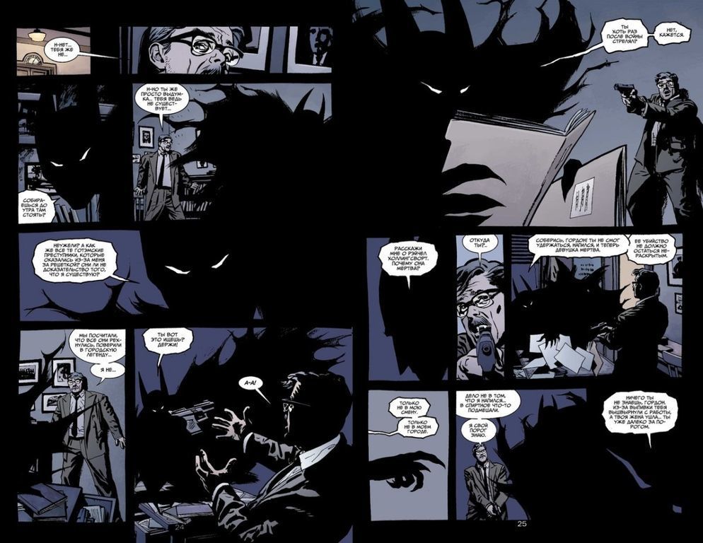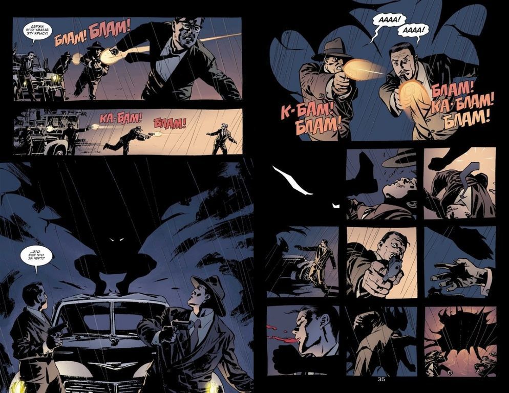 В этом необычном ваншоте Эд Брубейкер, автор, подаривший миру историю о первой встрече Бэтмена и Джокера в комиксе «Человек, который смеется», помещает всем известных героев в атмосферу безысходных 50-х, наполненную гангстерами в широких шляпах, роковыми женщинами и мрачными тайнами.