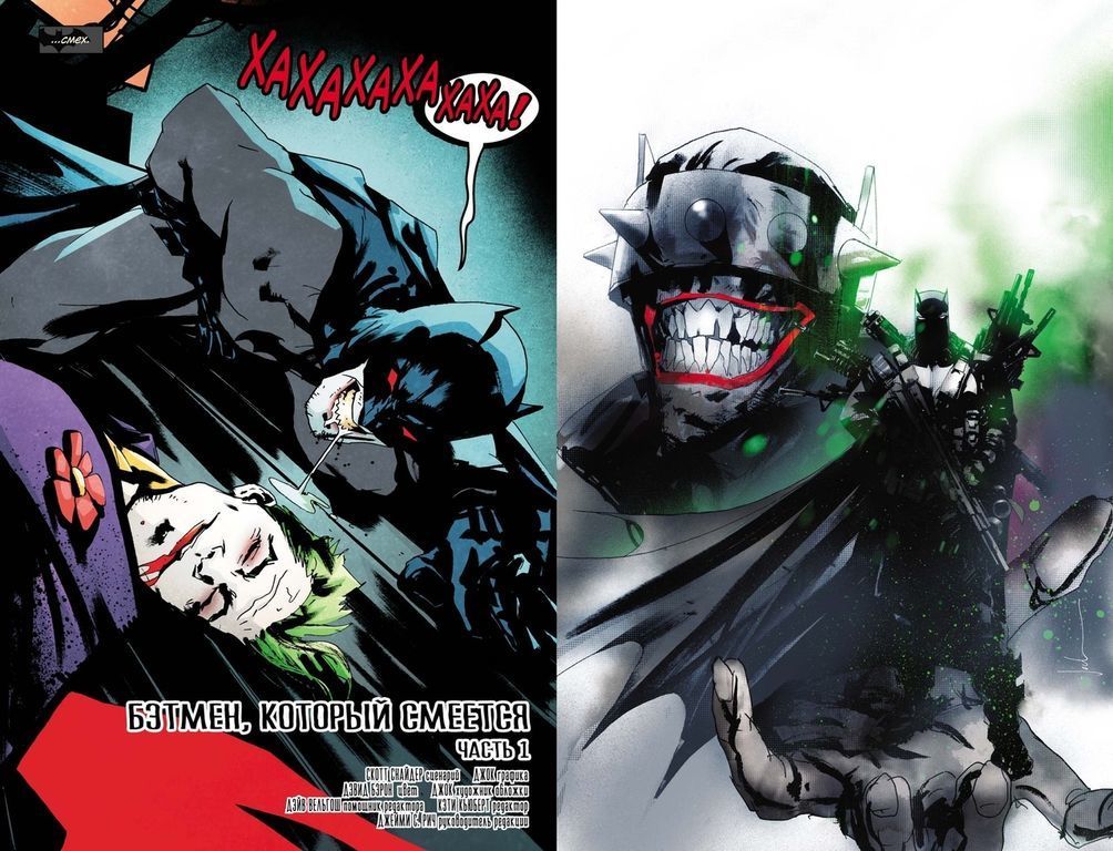 «Бэтмен, Который Смеется» – мини-серия Скотта Снайдера и Джока, которая подхватывает сюжетные линии с грандиозного кроссовера «Тёмные ночи: Металл» и продолжает утверждение Смеющегося Бэтмена как одного из самых опасных злодеев во вселенной DC. В книгу вошли все семь выпусков одноименной серии и ваншот «Мрачный Рыцарь».