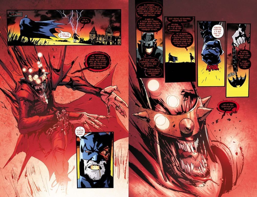 Довольно быстро все сводится к простой разгадке: в город вернулся Бэтмен, Который Смеется, бывший слуга Барбатоса, и он по-прежнему намерен погрузить Мультивселенную во тьму. Для этого чудовищный двойник обзавелся сильным единомышленником – вооруженным до зубов Мрачным Рыцарем... Впрочем, и на стороне Бэтмена появляется неожиданный союзник.