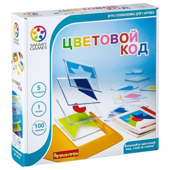 Настольная игра-головоломка Цветовой код достаточно компактна, поэтому её очень легко взять с собой в путешествие. Маленькие дети будут точно заняты ;) В коробке дисплейного типа лежит 18 пластмассовых рамок с изображением геометрических фигур, подставка для их комбинирования и книга с заданиями (в ней можно найти решения ко всем 100 задачам). Все игровые элементы игры Цветовой код (ну, кроме книжки, конечно) сделаны из прочной пластмассы.