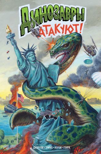 Они вернулись! Спустя 30 лет после выхода оригинальной серии карточек "Динозавры атакуют!" от Topps, прогрызшей дыру в карманах школьников, возвращается комикс от Eclipse от создателя серии Гэри Джерани: комикс впервые издан полностью! Художником серии стал Герб Тримп, а колористом – Эрл Норем.