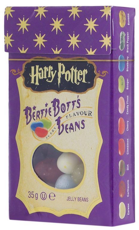 Забавные желейные драже скрывают под цветной оболочкой следующие вкусы: банан, спелая вишня, свежескошенная трава, черный перец, вкус корицы, мыло, сосиска, зеленое яблоко, черника, грязь, лимон, мультифрут, сопли, земляные червяки, рвота, зефир, арбуз, ушная сера, сахарная вата, протухшее яйцо - невероятные вкусы конфет Гарри Поттера способны удивительным образом оживить любую компанию друзей или родных, подняв настроение и превратив обычный вечер в невероятно яркое, надолго запоминающееся веселое событие!