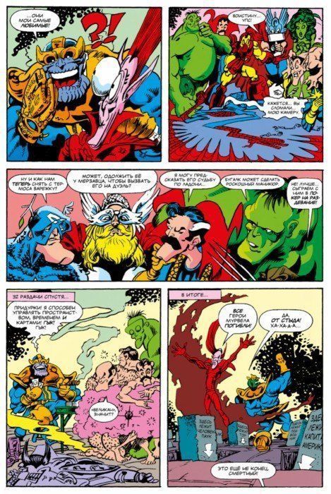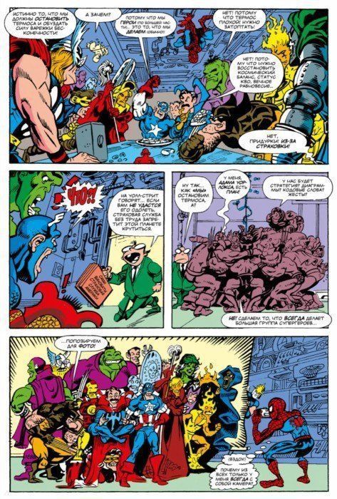 Внутри каждого выпуска вы сможете несколько историй о могучих героях и коварных злодеях, таких как Свин-Паук, Капеллан Америка, Капитан Шизам и, конечно же, зловещий Термос, готовый одним щелчком своей варежки бесконечности уничтожить половину Вселенной.