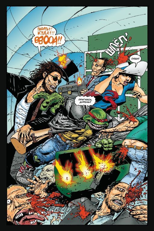 Самый жёсткий и крутой комикс про Черепашек-ниндзя, вдохновлённый подпольными журналами Heavy Metal и боевиками Джона Ву! Брутальная парочка Рафаэль и Кейси Джонс попадают на грязные улицы Нью-Йорка 80-х, и теперь им предстоит столкнуться с убийцами, роботами, ниндзя, бандитами... Но на этот раз они не стесняются применять своё оружие по полной, не гнушаясь даже пушками и бомбами! Столько крови, взрывов и перестрелок в комиксах про Черепашек-ниндзя вы ещё не видели!