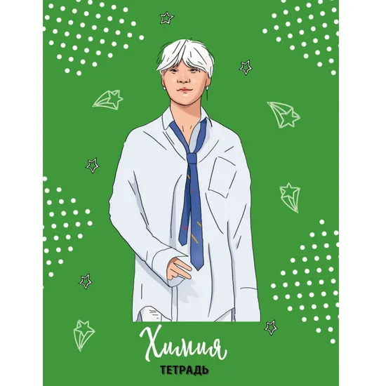 Проведи учебный год вместе с любимыми BTS и этой предметной тетрадью! Используй ее для классных и домашних работ, а накидки с главными химическими формулами будут полезными, если ты вдруг что-то забудешь. А когда урок закончится, положи тетрадь на парту обложкой вверх – покажи всему классу, что ты выбираешь стиль в мелочах и индивидуальность, а неоднообразные будни. Дерзай!