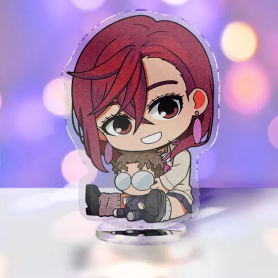 В комплект входит: акриловая фигурка персонажа и акриловая подставка.