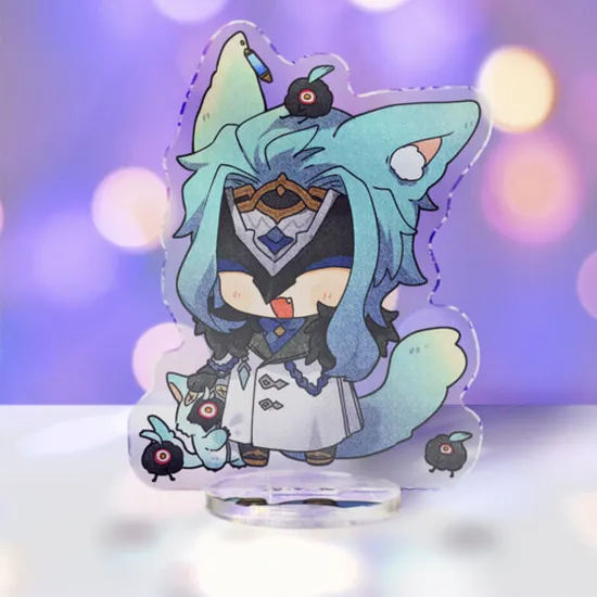В комплект входит: акриловая фигурка персонажа и акриловая подставка.