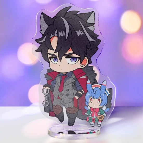 В комплект входит: акриловая фигурка персонажа и акриловая подставка.
