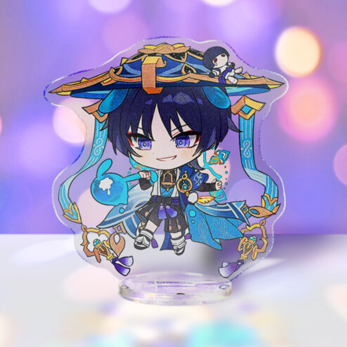 В комплект входит: акриловая фигурка персонажа и акриловая подставка.