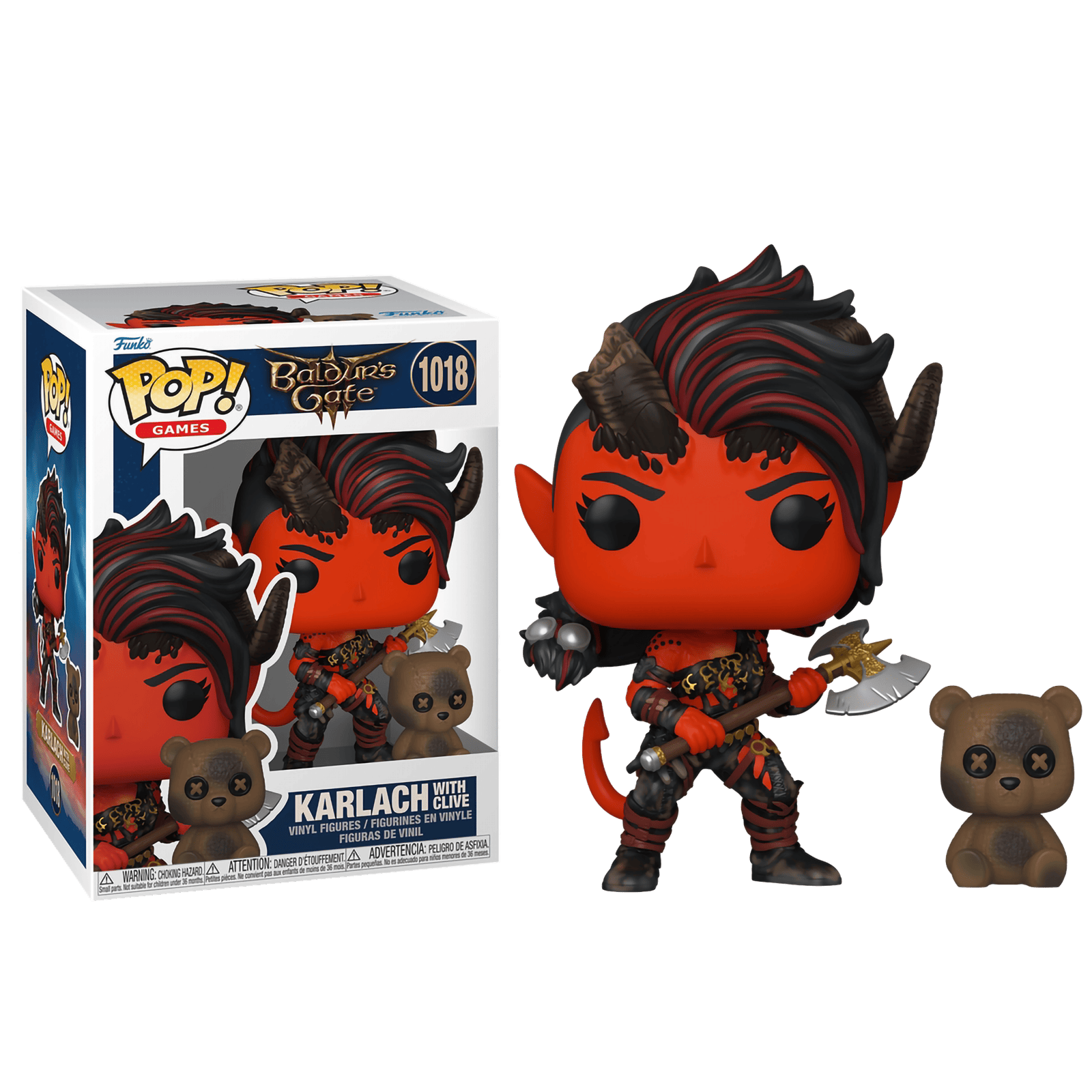 Фигурка Funko POP! Games — Baldur’s Gate: Karlach with Clive (№1018) — мощная героиня из культовой RPG Baldur’s Gate 3, воплощённая в стиле Funko!