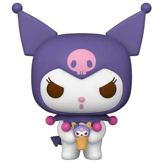 В своём фиолетовом колпаке с розовым черепом и маленьким мороженым в лапках, Куроми выглядит очаровательно и немного хулигански — как и всегда.