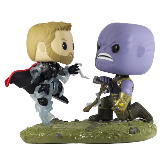 Фигурка Funko POP! Vinyl: Marvel: Movie Moments: Thor vs Thanos изображает фигурки героев комиксов и фильмов Тора и Таноса.