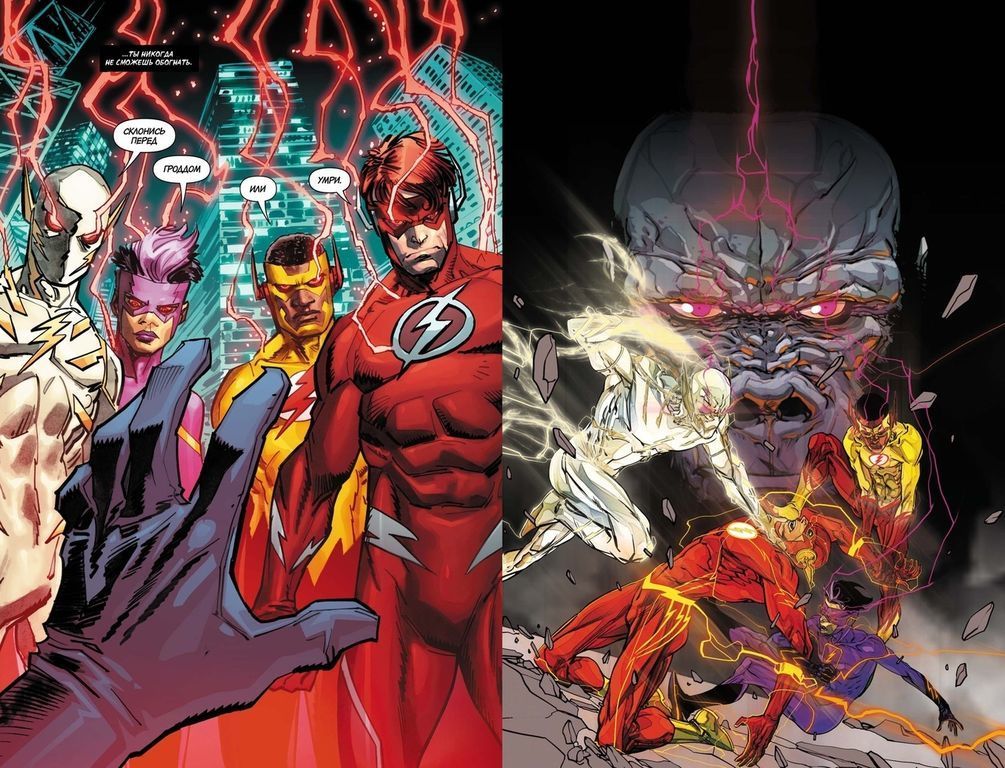 Справиться с таким серьезным противником без помощи Уолли будет непросто, но у того тоже хватает проблем: Уэст узнает, что из реальности были стерты его родные дети, и, возможно, виноват в этом никто иной, как Барри… Означает ли это, что темные секреты разрушат многолетнюю дружбу героев? Что Флэш пойдет войной на Флэша? Или же все это козни загадочного врага, который тоже помнит, каким был мир до Флэшпойнта?..