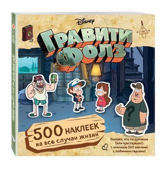 В удобном формате покета - целых 500 наклеек с любимыми героями из "Гравити Фолз", лучшими их словечками и фразочками, крутыми рисунками и супер-таинственными персонажами из леса, окружающего ставший знаменитым городок.