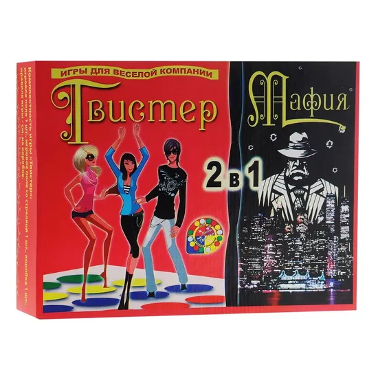 Настольная игра 2 в 1 "Твистер. Мафия" - увлекательный досуг для всей семьи. В набор входят две великолепные игры, которые обеспечат вам интересное и веселое времяпровождение!