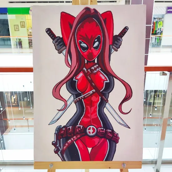 Картина авторская на холсте "Леди Дэдпул" (70х50см)