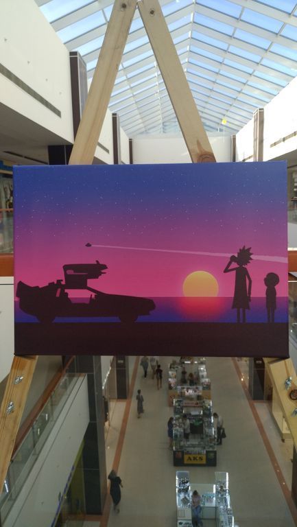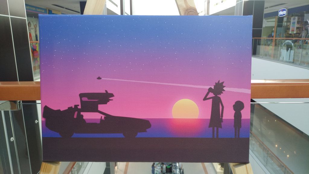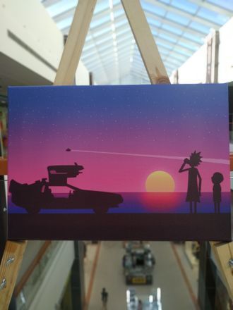 На картине изображены Рик и Морти — герои американского комедийного научно-фантастического анимационного сериала, созданного Джастином Ройландом и Дэном Хармоном и выпускаемого в рамках блока Adult Swim на телеканале Cartoon Network.