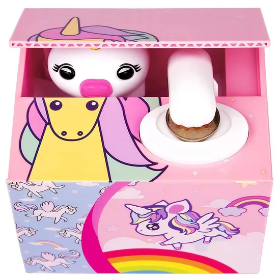 Забавная копилка с единорогом-воришкой, ворующей монетки!