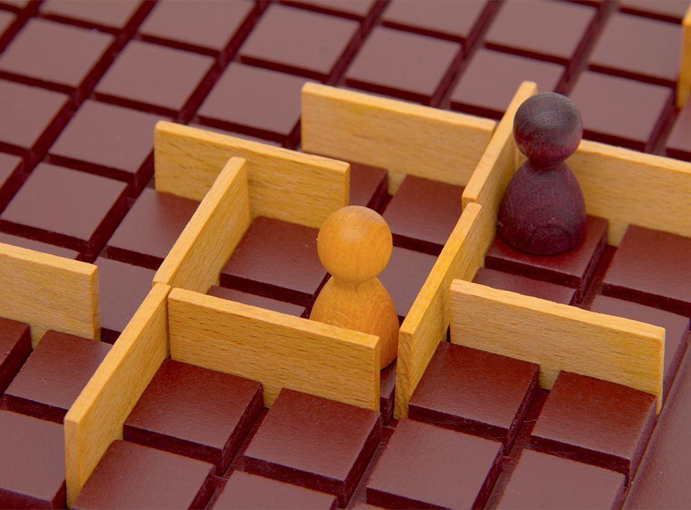 Перед каждым игроком стоит задача доставить свою фишку на противоположный конец поля размером 9х9 клеток. За ход можно шагнуть на клетку вперед, на клетку назад или клетку в сторону, либо выставить забор (имеющийся у каждого участника в количестве 9 штук). Эта самая ограда позволяет притормозить путь соперника к победной цели или же обезопасить свою дорогу от вовремя предугаданных происков врага.