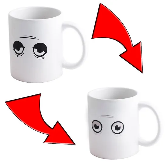 Все кружки хамелеоны имеют сходное устройство. На нижний цветной слой помещена чёрная термокраска. Эта краска становится прозрачной, когда вы наливаете в чашку горячую воду, – так и проявляется рисунок. При охлаждении кружки термослой вновь становится чёрным.