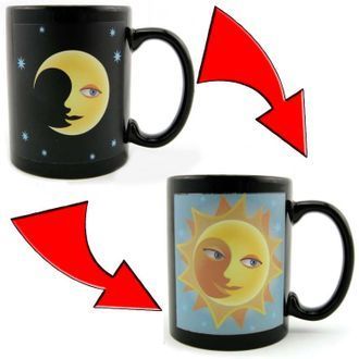 Все кружки хамелеоны имеют сходное устройство: на нижний цветной слой помещена чёрная термокраска. Эта краска становится прозрачной, когда вы наливаете в чашку горячую воду, – так и проявляется рисунок. При охлаждении кружки термослой вновь становится чёрным.