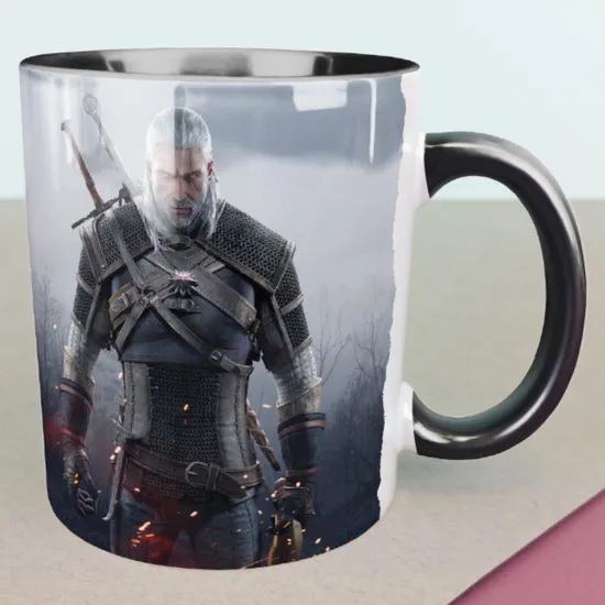 Кружка керамическая объем 330 мл, Ведьмак Геральт (черная)