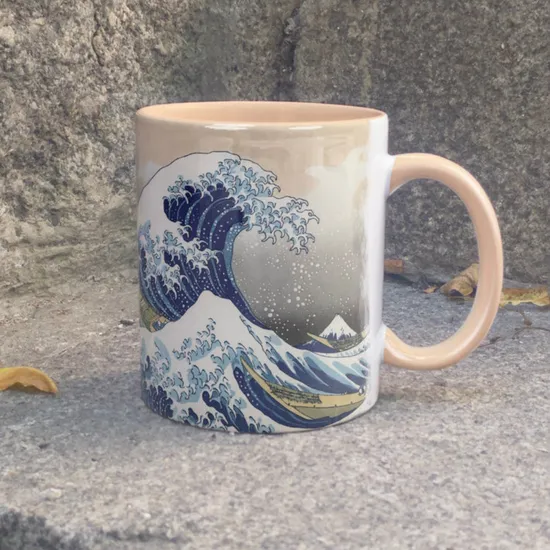 Кружка керамическая объем 330мл, "Большая волна в Канагаве", (белая)
