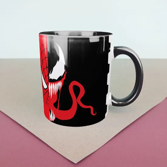 Кружка керамическая объем 330мл, "Человек-паук и Веном”, (черная)