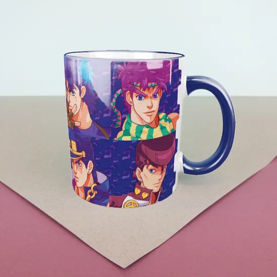 Кружка керамическая объем 330мл, "ДжоДжо" (синяя - белая внутри)