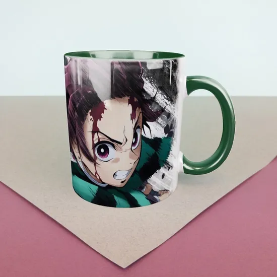 Кружка керамическая объем 330мл, Истребитель демонов "Тандзиро" (зеленая)