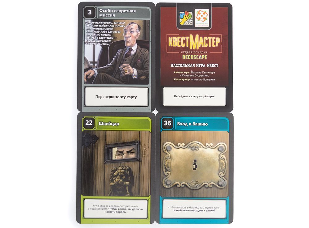 Описание настольной игры КвестМастер 2: Судьба ЛондонаБиг-Бен вот-вот пробьёт полночь, а вы с дрожащими руками и замирающим сердцем пытаетесь обезвредить четыре опаснейших устройства, ставящих под угрозу весь Лондон. Почувствуйте себя тайным агентом её Величества, распутайте клубок увлекательных головоломок и спасите город от катастрофы! "Квест-мастер. Судьба Лондона" - вторая игра серии настольных квестов "Квест-мастер". Играйте в неё в одиночку или приобщите друзей, чтобы вовремя справиться со всеми заданиями, иначе всё пропало!