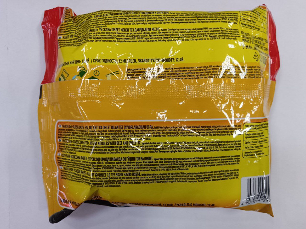 Тип: лапша быстрого приготовления с бульоном и сухим омлетом.