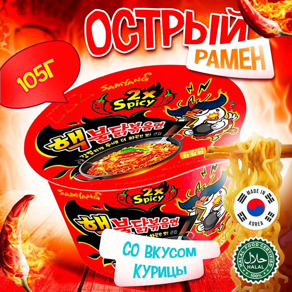 Официальная корейская лапша Samyang 2X Spicy в большом стакане — тот самый рамен-челлендж из роликов и стримов.