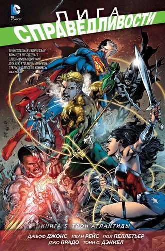 Звездная творческая команда, состоящая из Джеффа Джонса, Ивана Рейса, Пола Пеллетьера, Джо Прадо и Тони С. Дэниела, представляет полномасштабную битву за владычество над сушей и морем! "Лига Справедливости: Трон Атлантиды" объединяет 13-20 выпуски "Лиги Справедливости" и 15-16 выпуски "Аквамена".