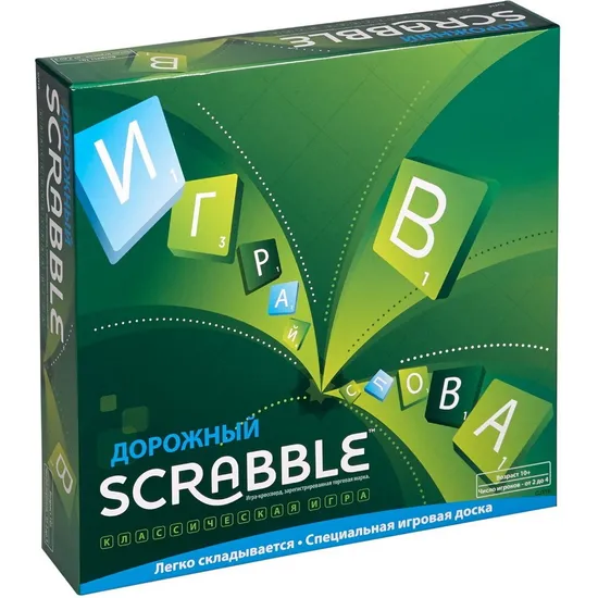 Scrabble - настольная игра, в которой 2 или 4 играющих соревнуются в образовании слов с использованием буквенных плиток на доске, разбитой на 225 квадратов. Поле игры изготовлено из прочного картона.