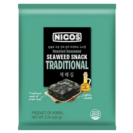«Nicos Seaweed snack» - тонкие и хрустящие пластинки морской капусты. Натуральный продукт, богатый кальцием, йодом, железом, фосфором, разнообразными витаминами и минералами. Снэк в яркой упаковке для всей семьи. Товару присвоен сертификат качества USDA, США. Экологически чистый сельскохозяйственный продукт. Продукт готов к употреблению без дополнительной обработки.
