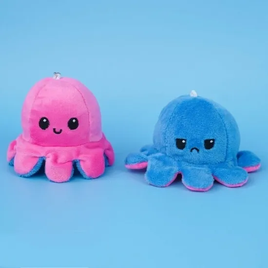 Мягкий брелок-перевертыш Осьминог 10 см. станет отличным подарком для друзей и близких. Двусторонний брелок-антистресс поможет показать Ваше истинное настроение на сегодняшний день. Нужно только вывернуть игрушку на нужную сторону. Осьминог настроение - универсальный мягкий брелок, которыйя не имеет возрастного ограничения и подойдет, как для взрослых, так и для самых маленьких.